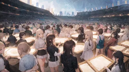 Usage 2: Using negative weights to make the edges clearer, but this lora won't make the lines too thick and make the distant characters clearer. Please refer to the crowd of girls in the legend for details. (The large depth of field is caused by my background control Lora).