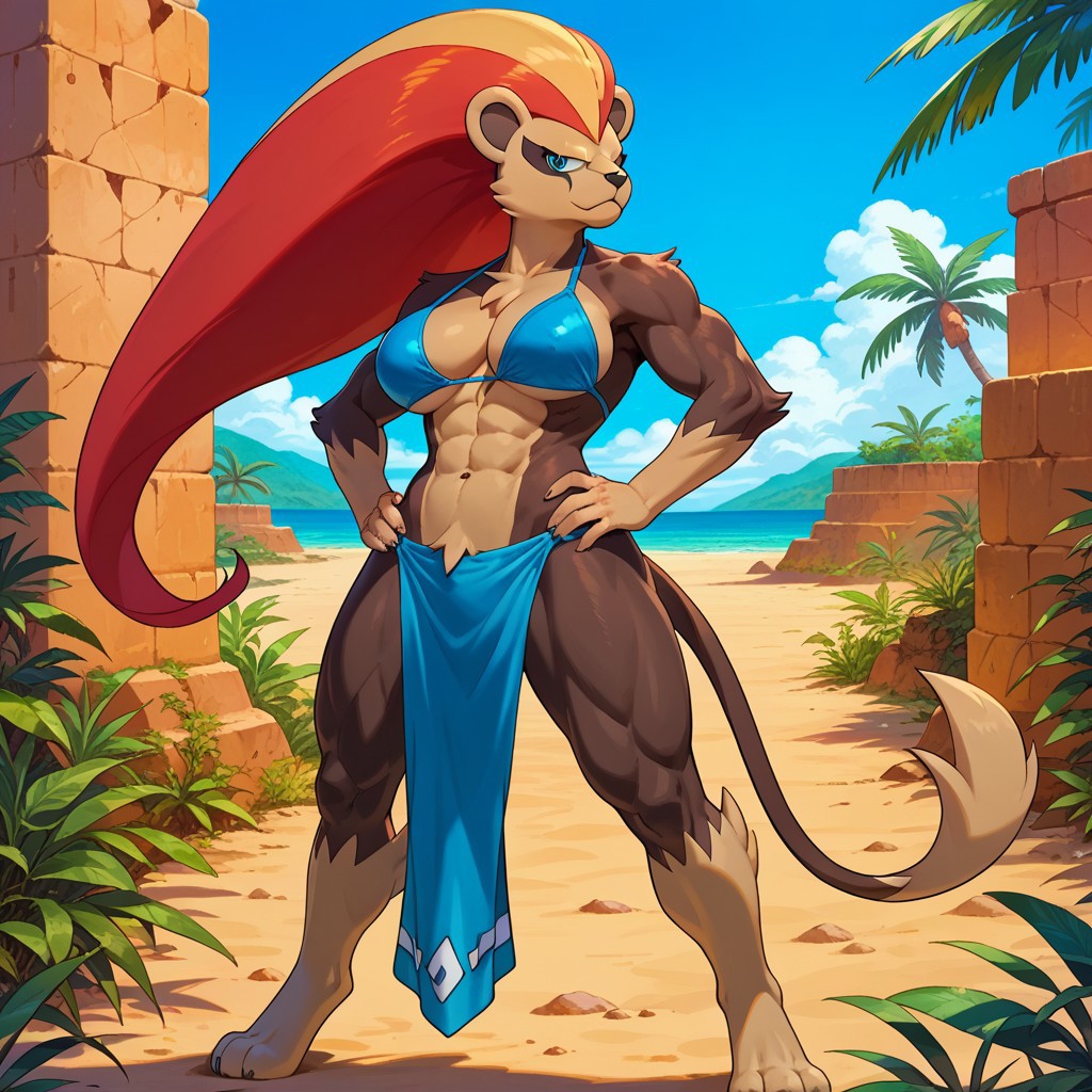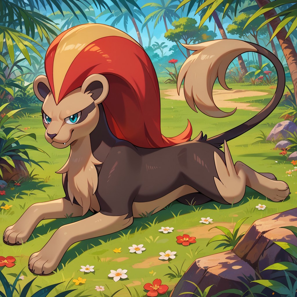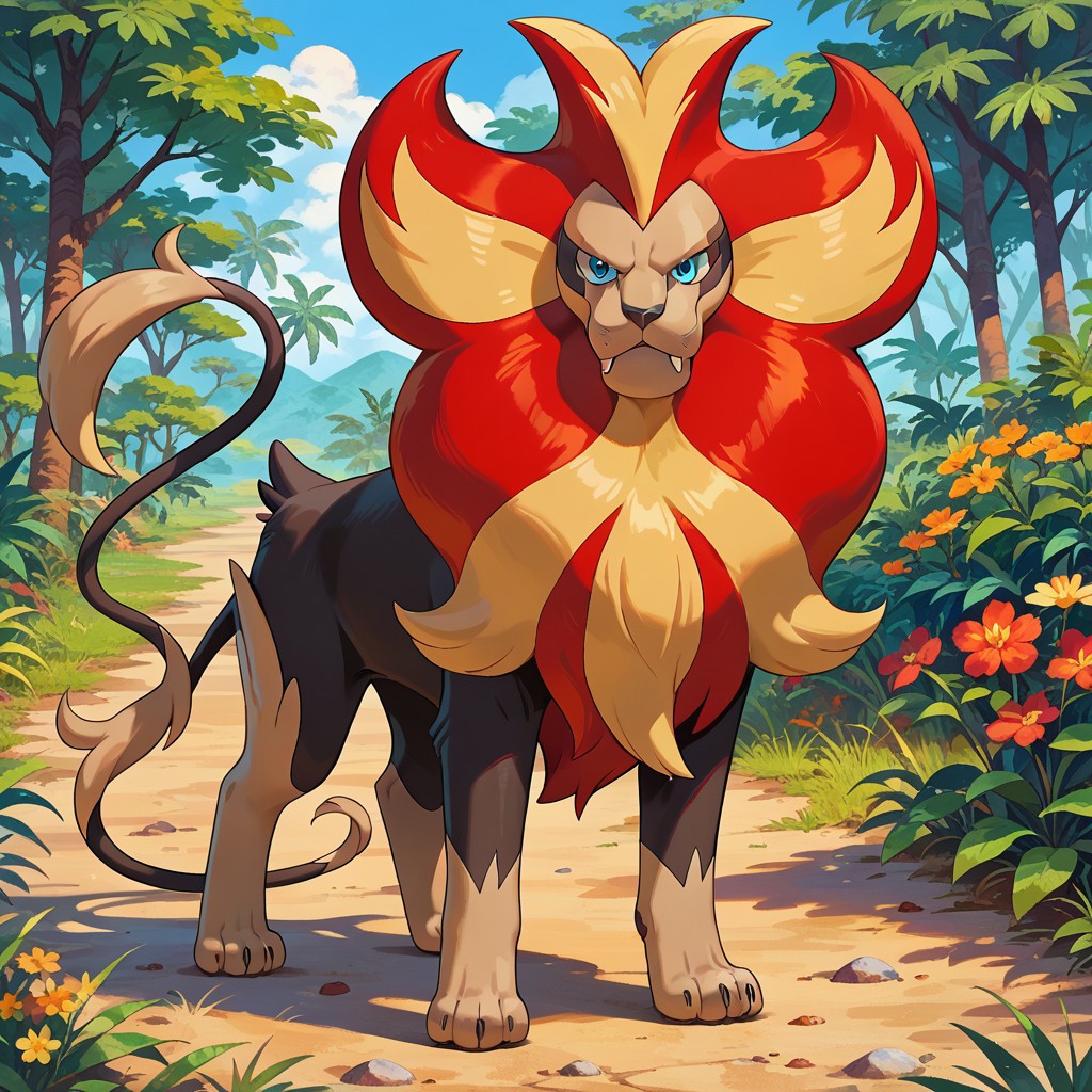 Pokemon, black and tan fur, blue eyes, thin tail,