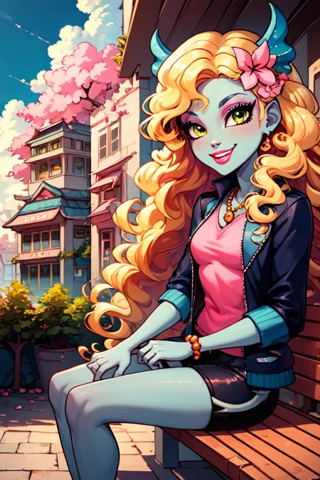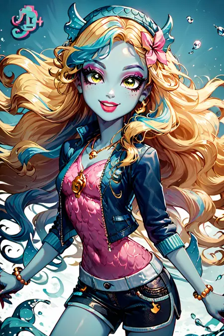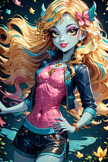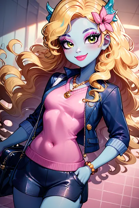 | 训练词汇 | zzLagoona, green eyes, yellow eyes, blonde hair, blue hair, curly hair, hair flower, hair ornament, long hair, multicolored hair, wavy hair, blue skin, 已复制! zzLagoona, green eyes, yellow eyes, blonde hair, blue hair, curly hair, hair flower, hair ornament, long hair, multicolored hair, wavy hair, blue skin, makeup, jewelry, lipstick, necklace, bracelet, eyeshadow, flower, pink shirt, black shorts, black jacket, 已复制! |