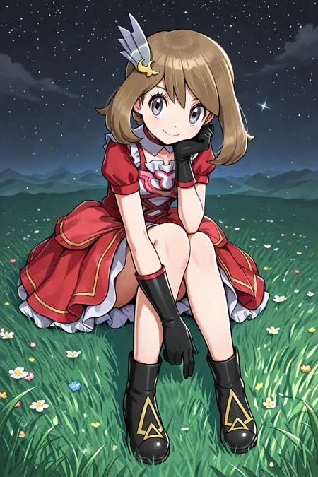 annimay, may \(포켓몬\), 회색 눈, 갈색 머리, 중간 길이 머리, 앞머리