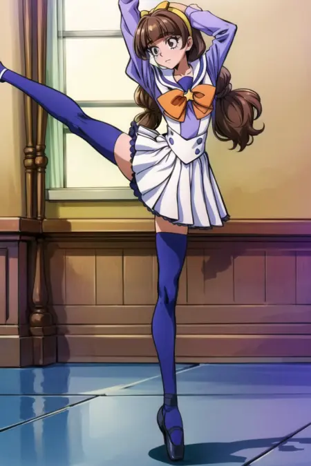 Makes the character attempt to do the arabesque ballet pose. Works better with 0.7-0.8 weight or experiment depending on your lora. Usually defaults to ballet attire if you dont specify clothing in the prompt. Use full body if needed