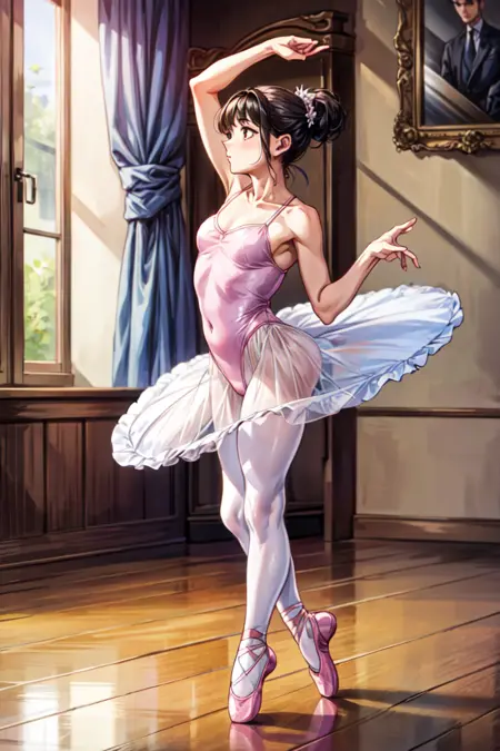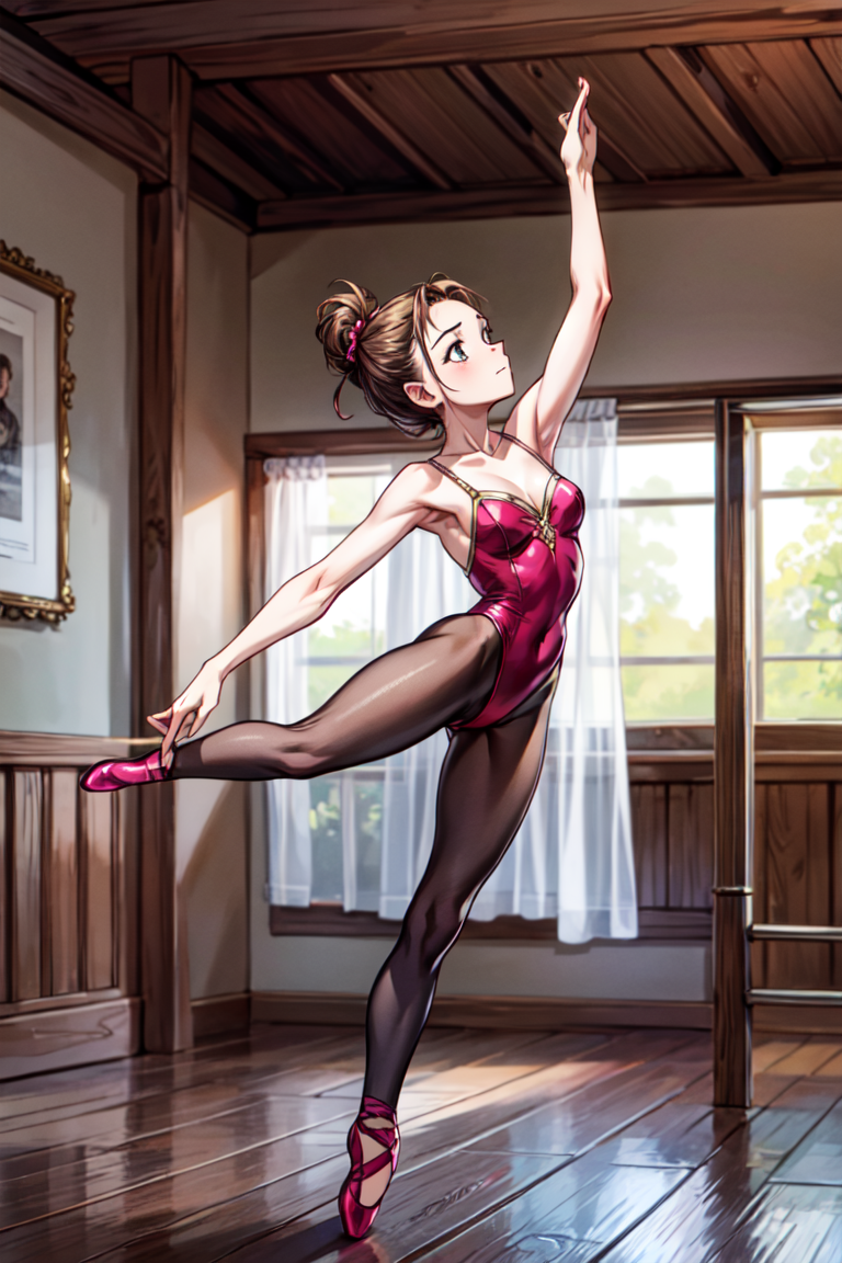 Makes the character attempt to do the arabesque ballet pose. Works better with 0.7-0.8 weight or experiment depending on your lora. Usually defaults to ballet attire if you dont specify clothing in the prompt. Use full body if needed