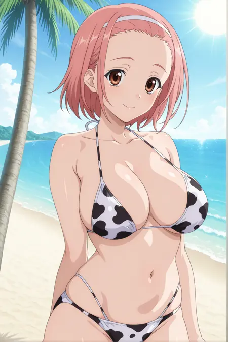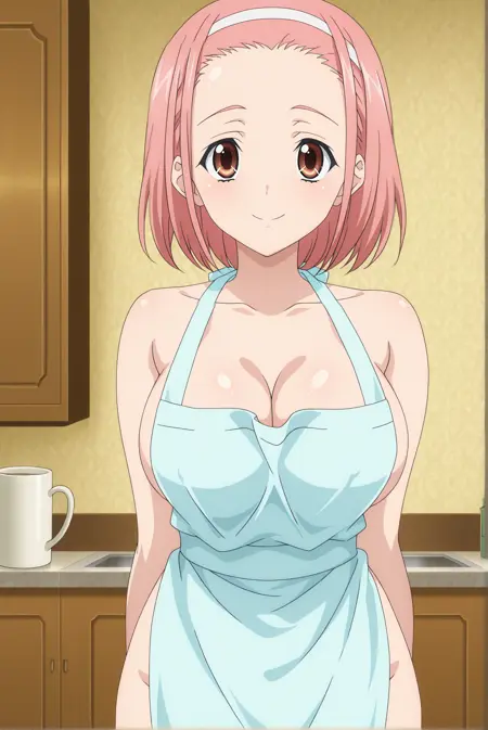 katase-dxd, 1girl, short hair, pink hair, hairband, brown eyes, warm chestnut brown eyes