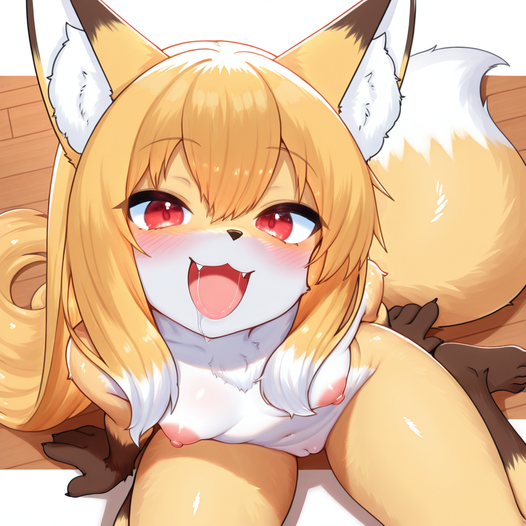 It went from; Furry female, body fur, fur, white fur, brown fur, yellow fur, two-tone fur, fox girl, fox ears, fox tail, red eyes, animal ear fluff