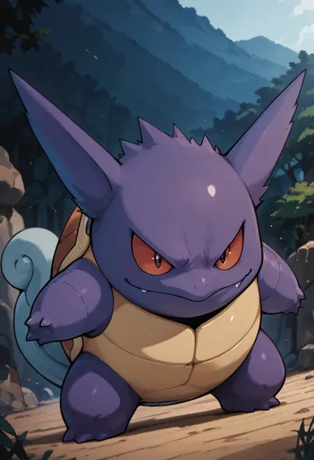 This is a fusion of Wartortle and Gengar that designed with my real Pokemon Loras.
