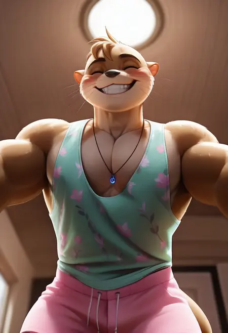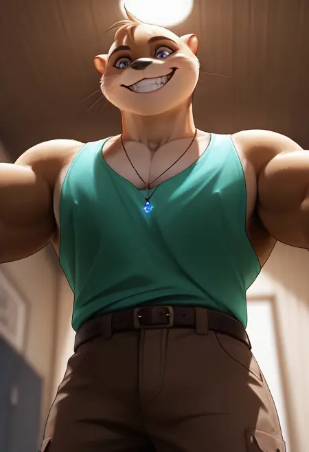 • Reinforcement Prompts: "otter boy, furry, tail, blue eyes, muscular, masculine, manly, large pectorals"
