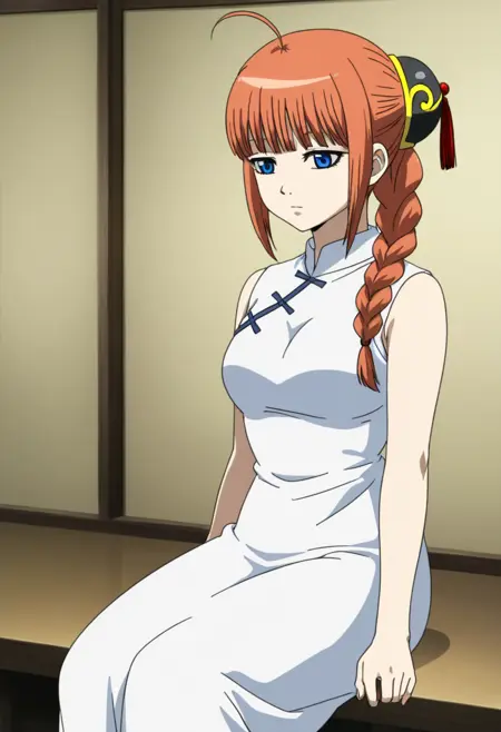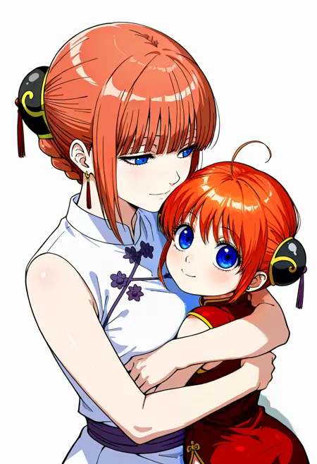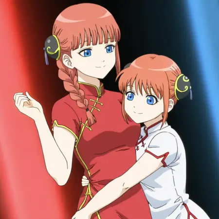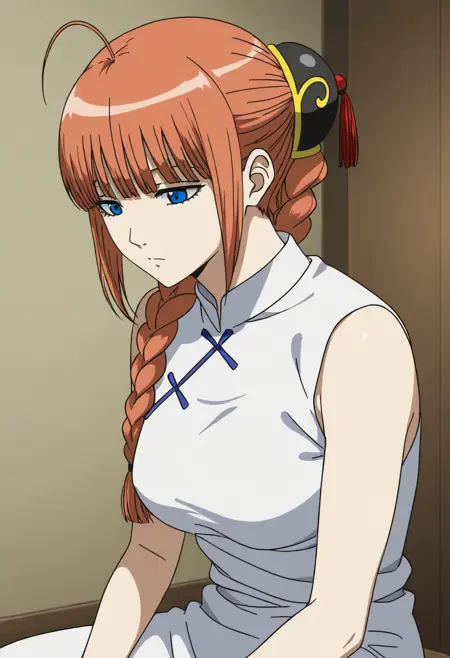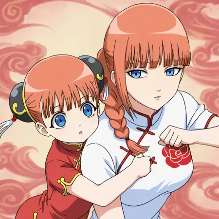 gintama kouka, kouka, kagura mom, orange hair, braid, single bun cover, ahoge, blue eyes,