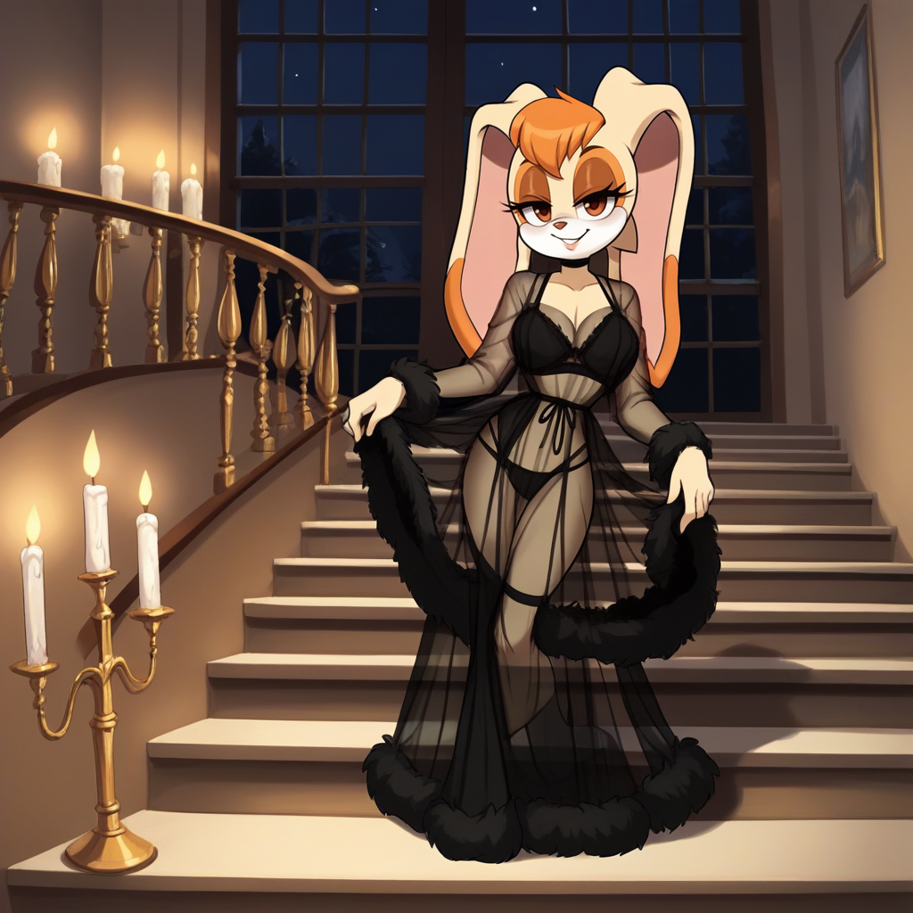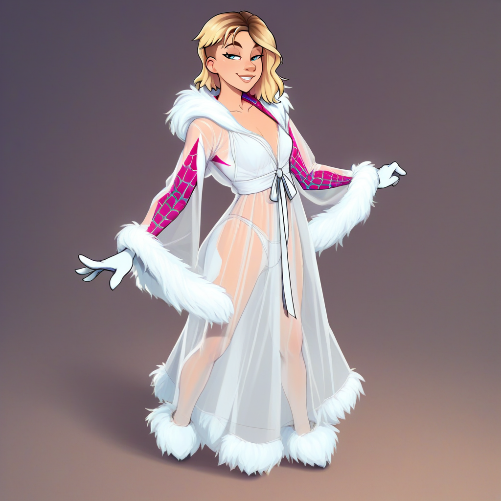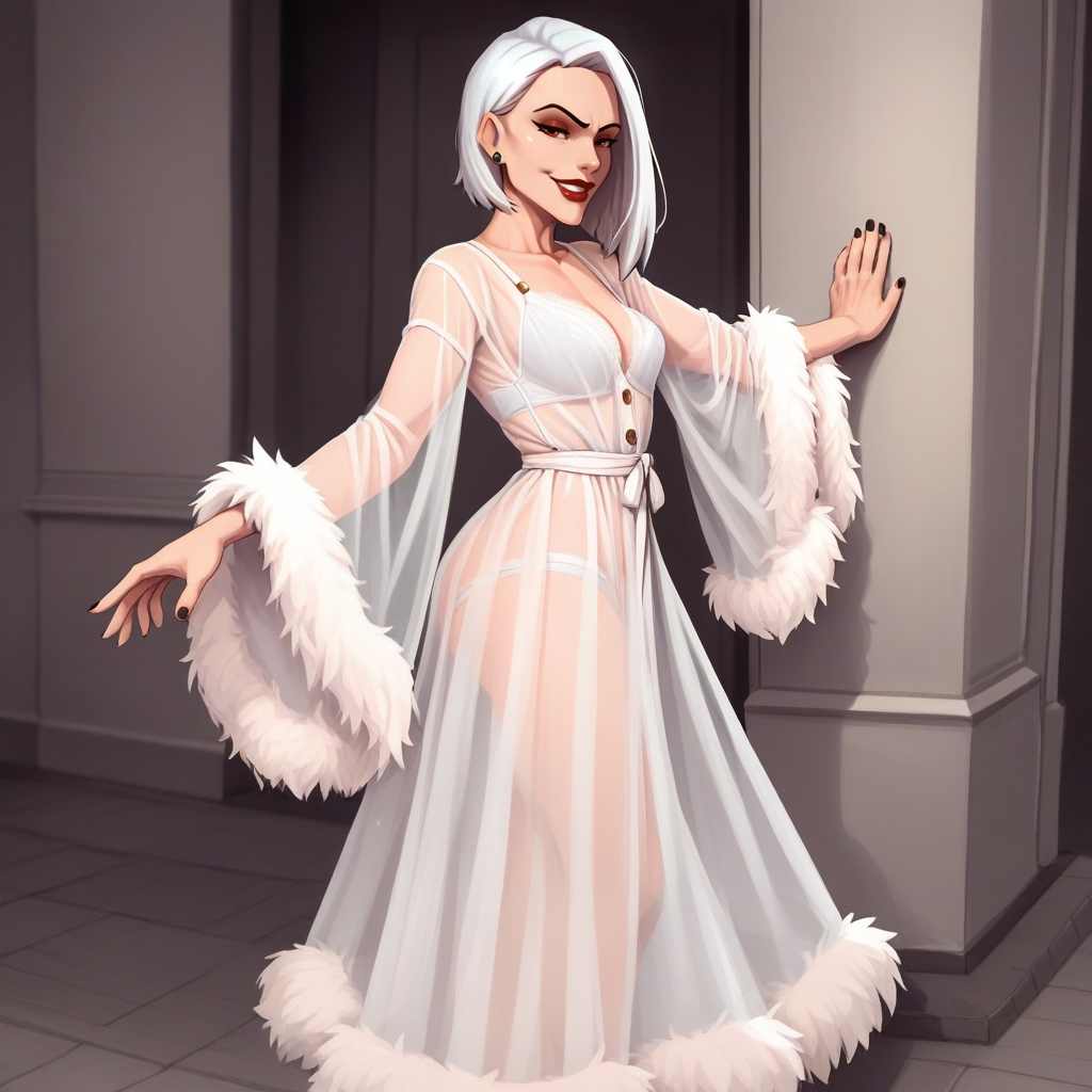 dress, fur trim, 1girl, solo, see-through, lingerie