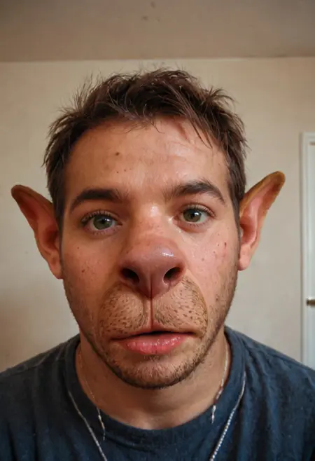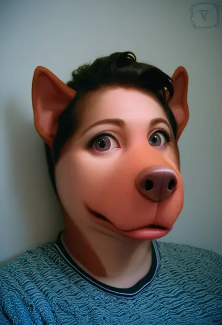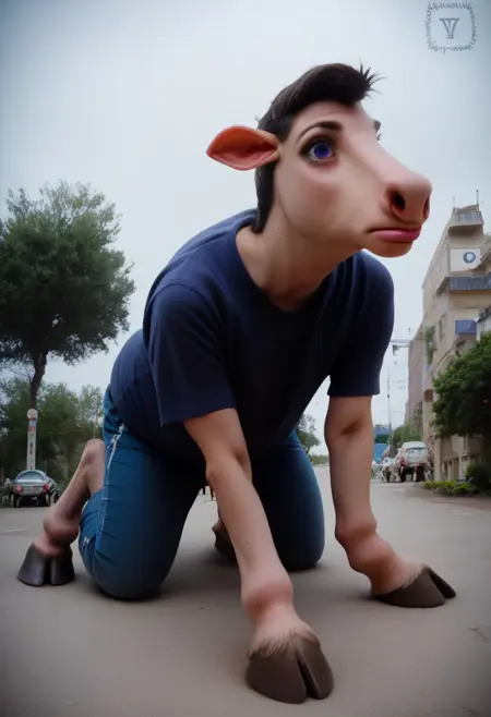Good key phrases to use include "partial transformation", "sitting", "all fours", and areas of focus ("foot focus", "snout focus", "face focus", "hand focus"). Trained primarily on dog, bull, cow, donkey, wolf, werewolf, pig, monkey, and mouse transformations