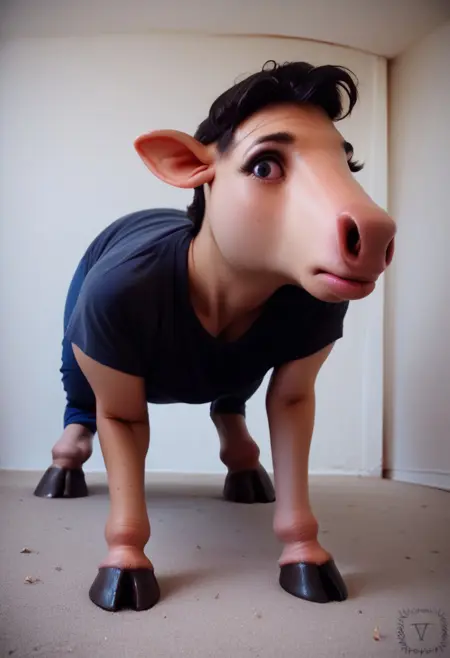 사용하기 좋은 핵심 문구로는 "부분적 변형", "앉아 있는", "네 발로 서 있는" 및 초점 영역("발 초점", "코 초점", "얼굴 초점", "손 초점")이 있음. 주로 개, 황소, 소, 당나귀, 늑대, 웨어울프, 돼지, 원숭이, 쥐의 변형에 대해 학습됨