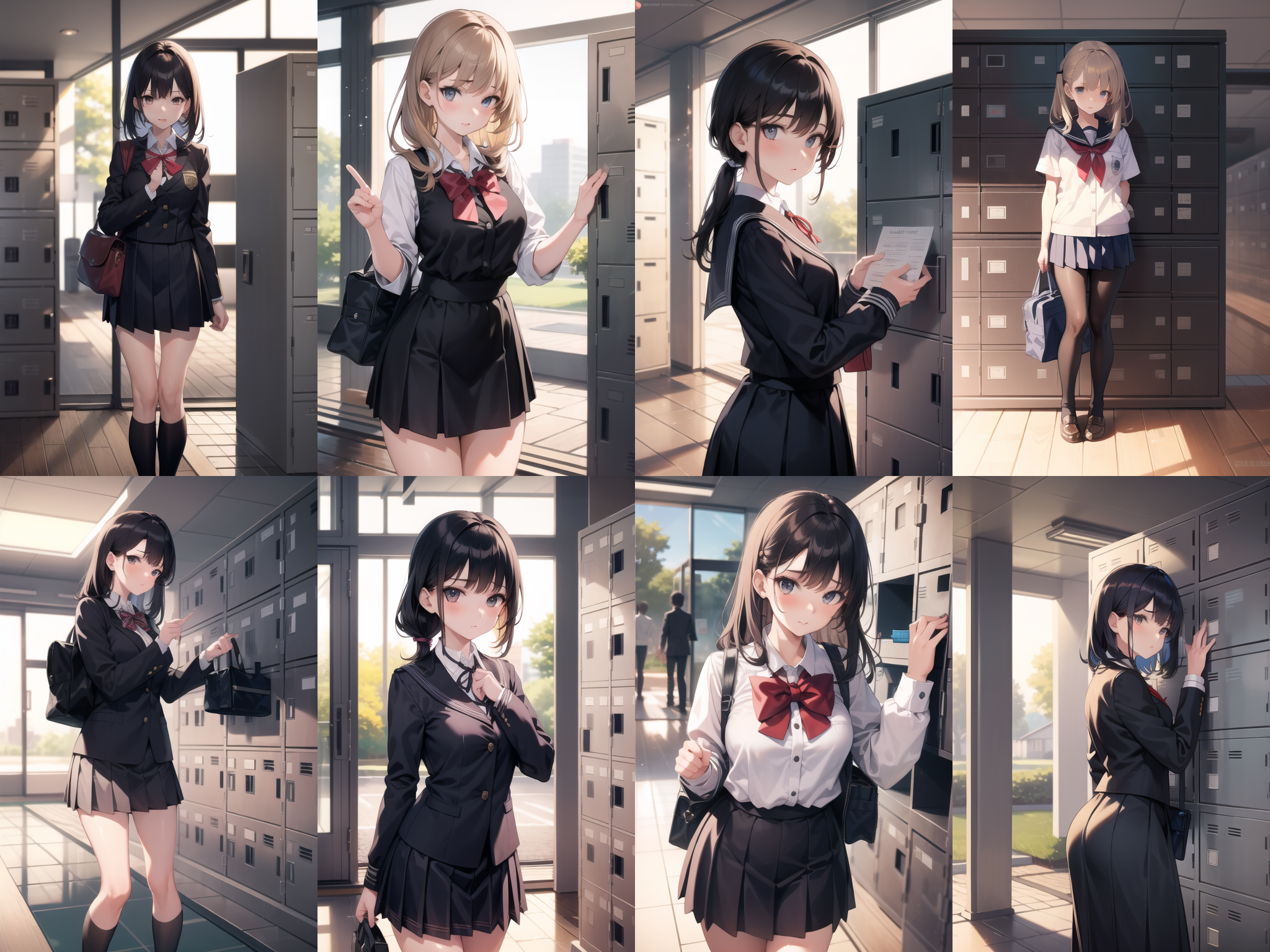 LoRA 训练用于生成更衣室背景。数据来源一般(且这是 SD),因此储物柜可能并不总能保持一致。