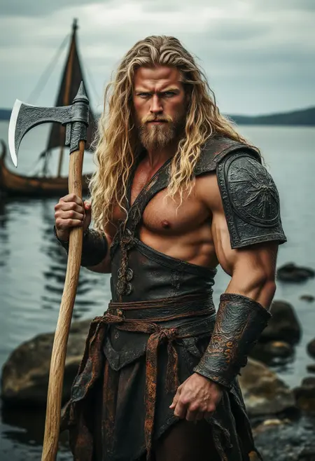 muscular nordic man with long wavey blond hair