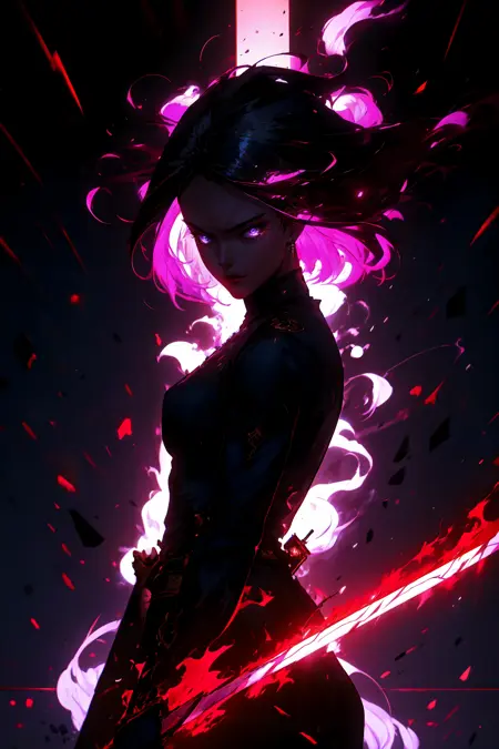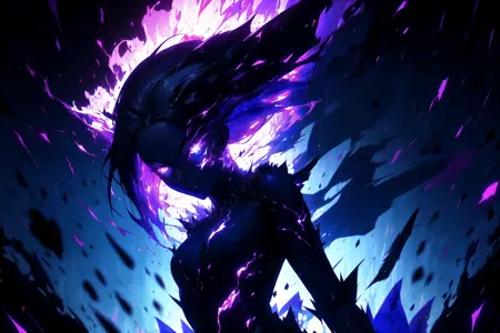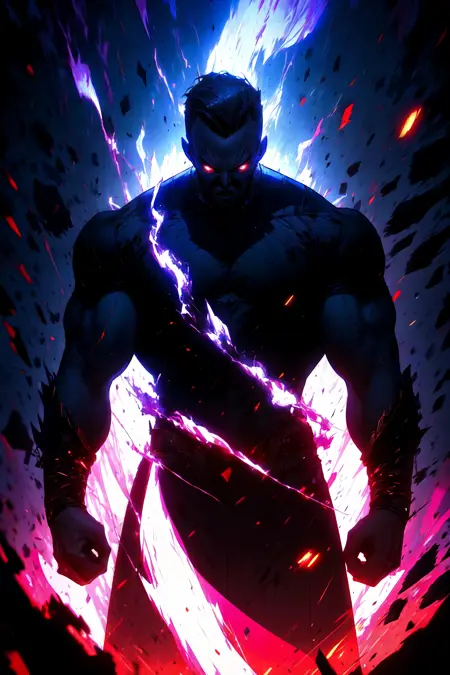 发光、气场、能量、光束、飞溅碎片、[严肃|愤怒]、飘浮头发,