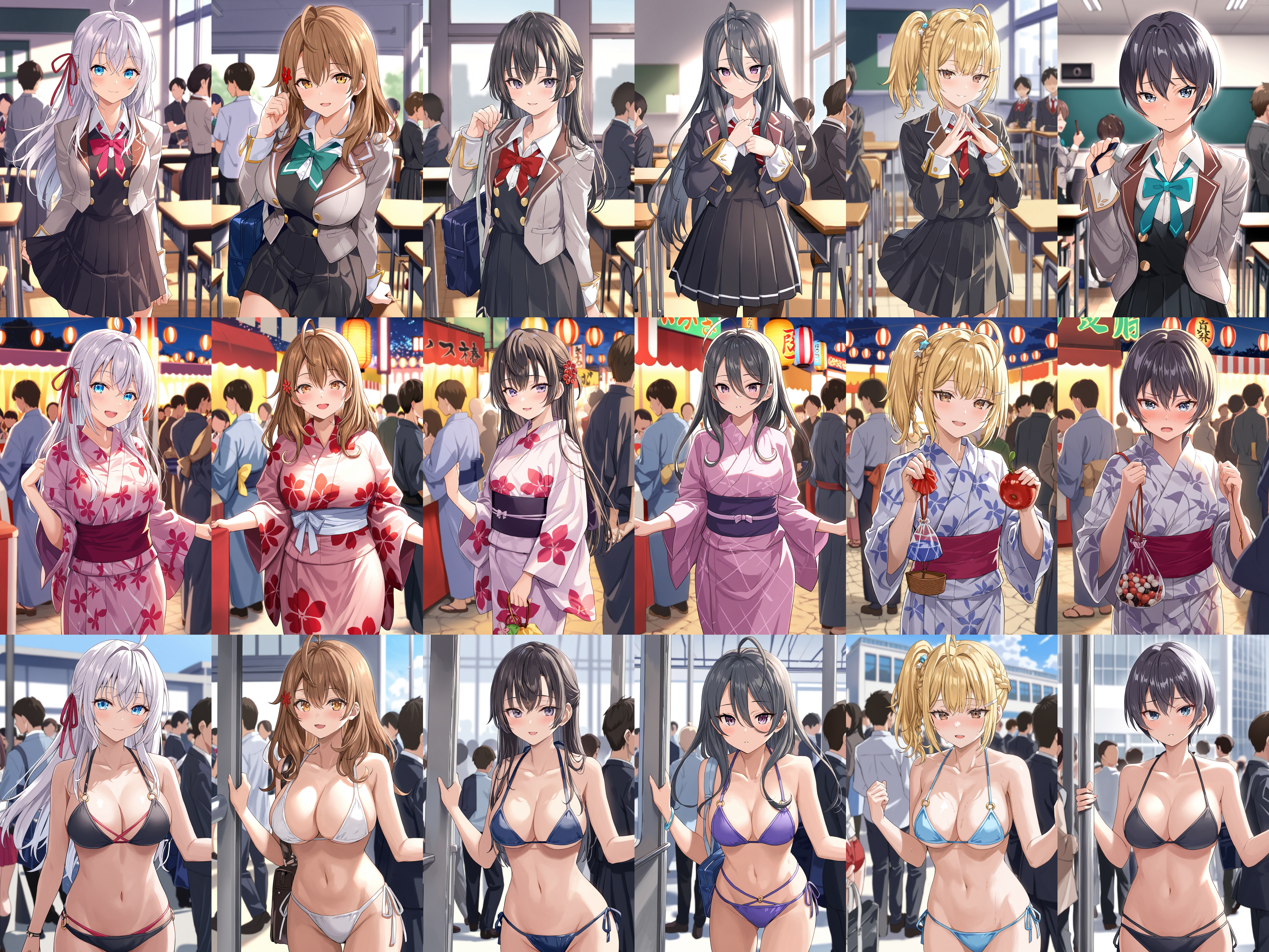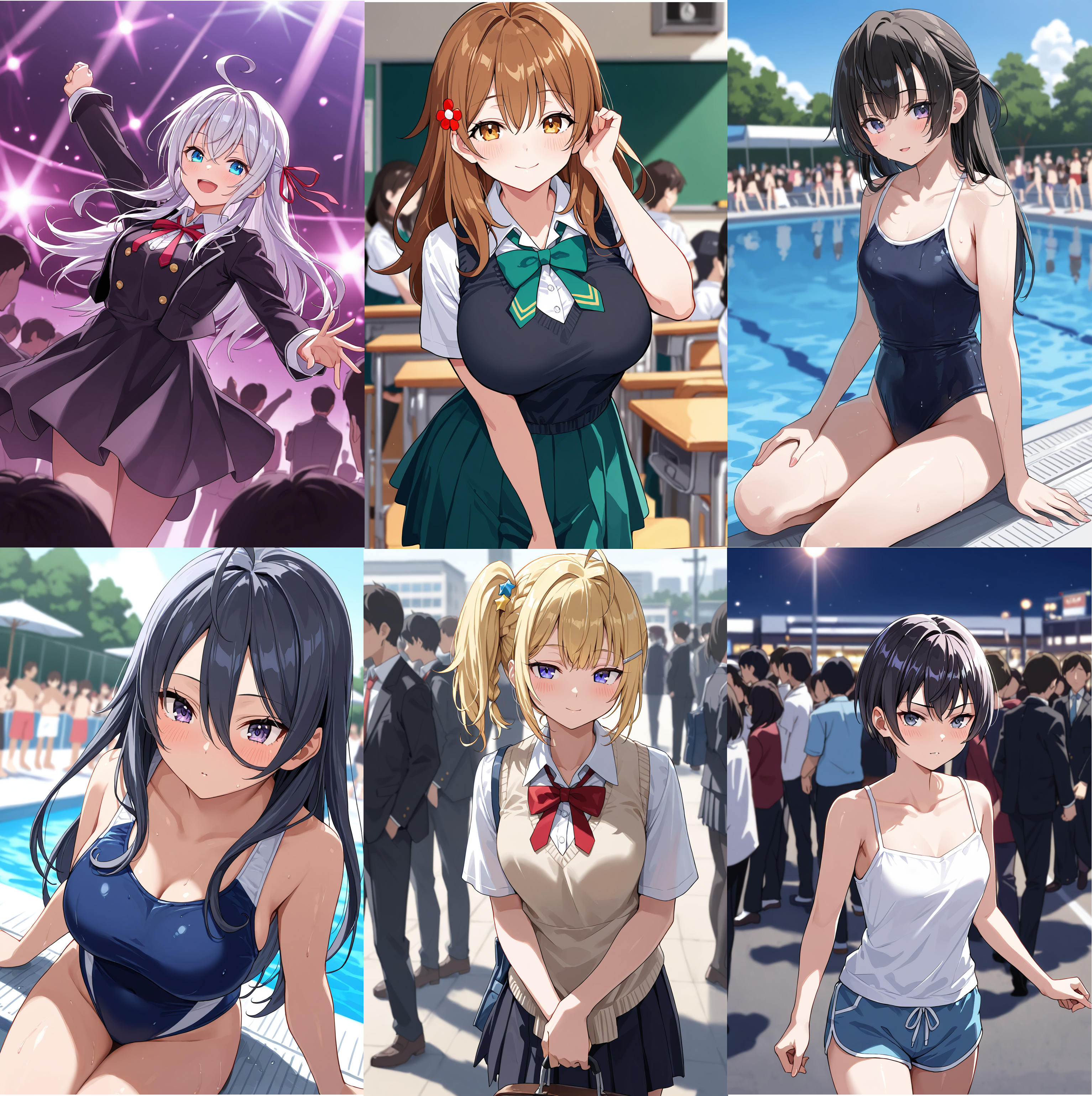 ・征嶺学園の制服は学年色までは再現できないため、必要に応じてred bowtieなどを使用してくだい。また、黒髪になりやすいので特に他のキャラクターLoraと併用する場合はプロンプトの調整が必要。