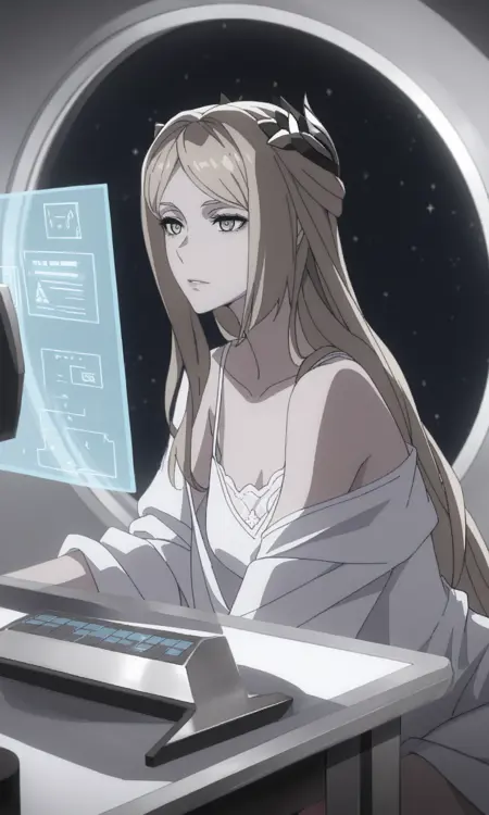 commanderwmv, 1girl, green eyes, long hair, blonde hair, hair ornament, ponytail,