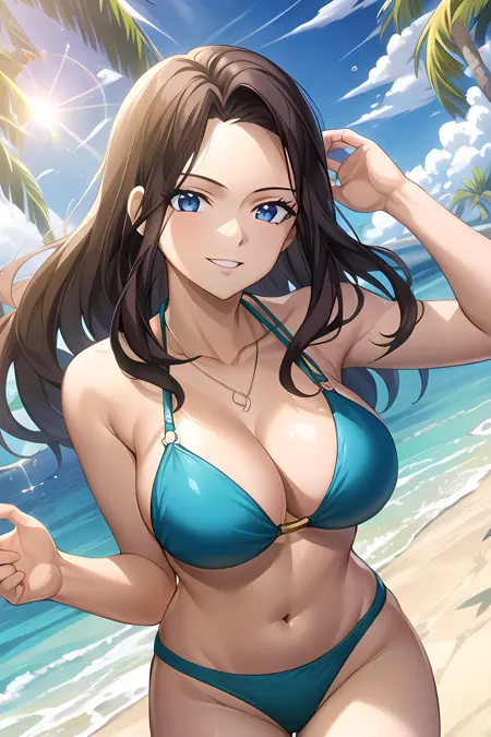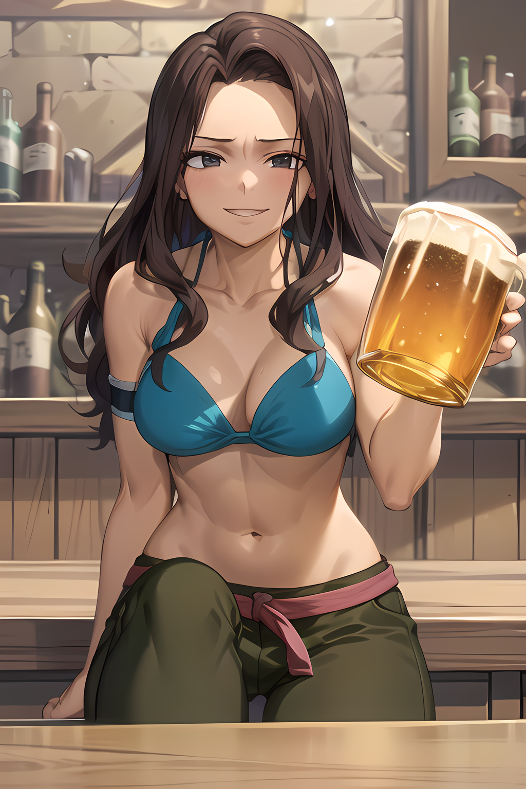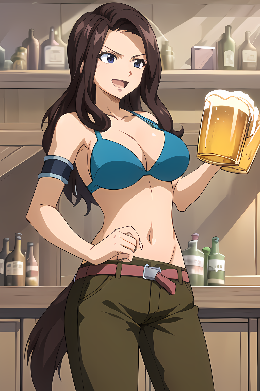 blue bikini, bikini top only, pants, belt, armlet, bracelet - 1시즌부터 텐로우 섬 아크까지의 옷