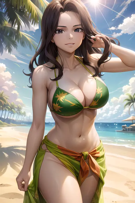 single hair bun, bikini top only, sarong, armlet, bracelet, tattoo - 마지막 시즌 옷