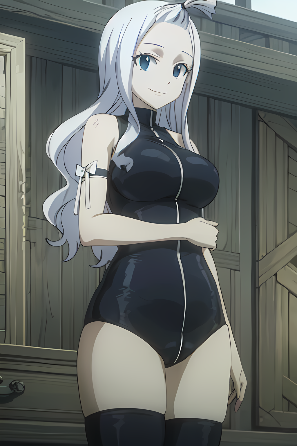 sleeveless, black thighhighs, one-piece swimsuit, zipper - ルーシー救出作戦で使用された衣装