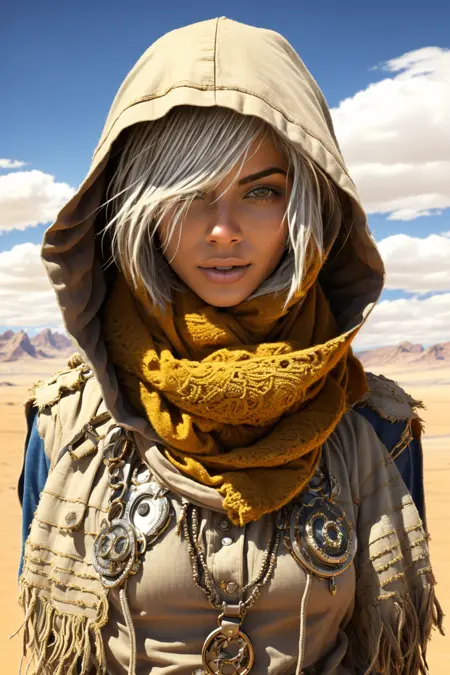 이 모델은 430장의 이미지로 학습되었으며, 포스트-어퍼칼립틱 사막 환경의 다양한 장면을 생성할 수 있습니다. 간단한 태그를 입력으로 사용할 때 뛰어난 성능을 발휘합니다.