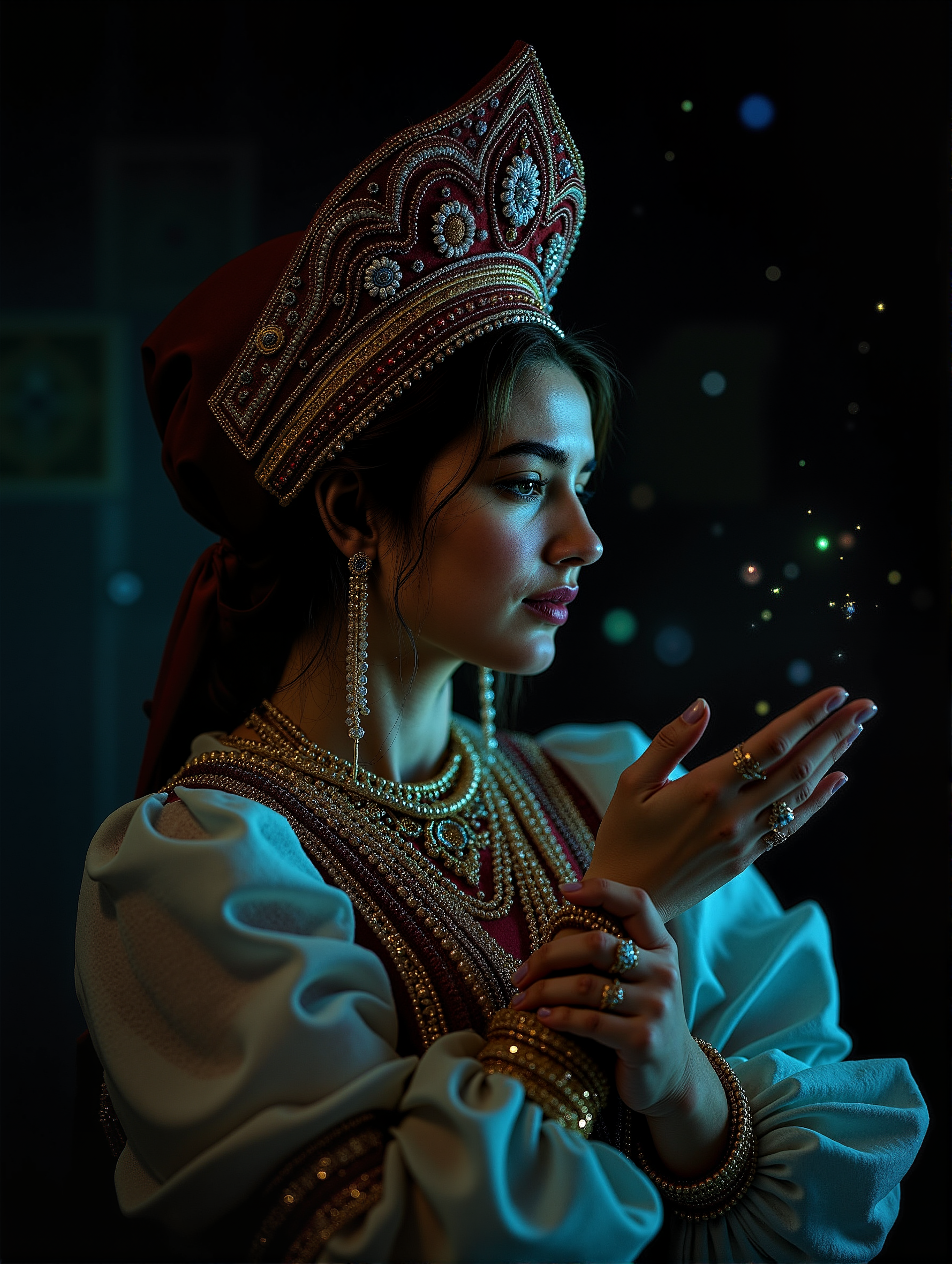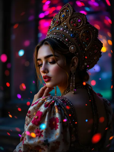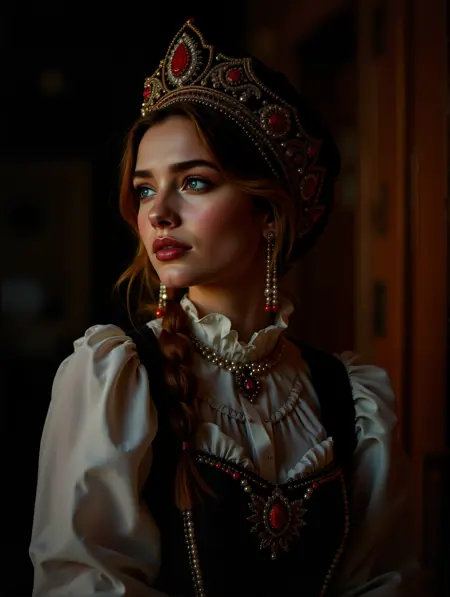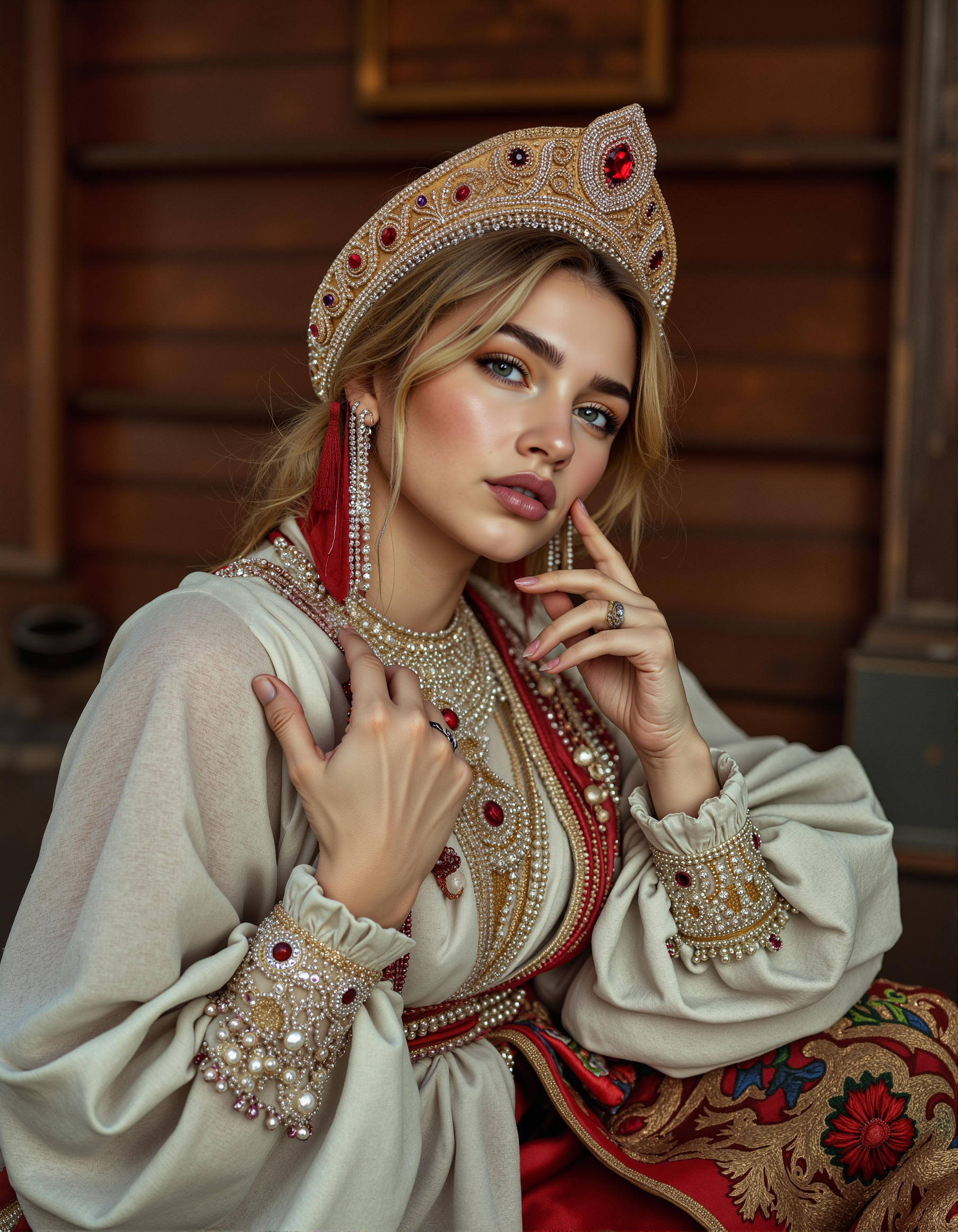 これはココシュニックの作成を支援します。最良の結果を得るには、アートに何を描きたいかを明確に示してください。たとえば、「19世紀のロシア伝統的な頭飾り - ココシュニック」などです。
