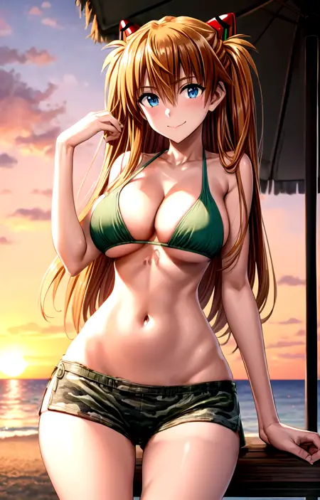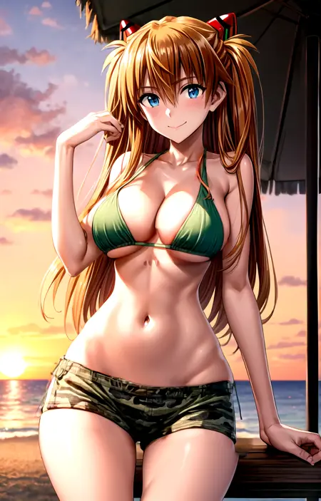 - Activation tag: no10-asuna, use with (white bikini, red trimming, o-ring, highleg:1.2), cleavage, halterneck, panties under shorts, and (red,white shorts, short shorts:1.2).