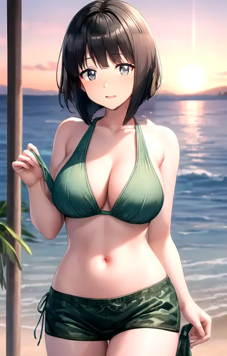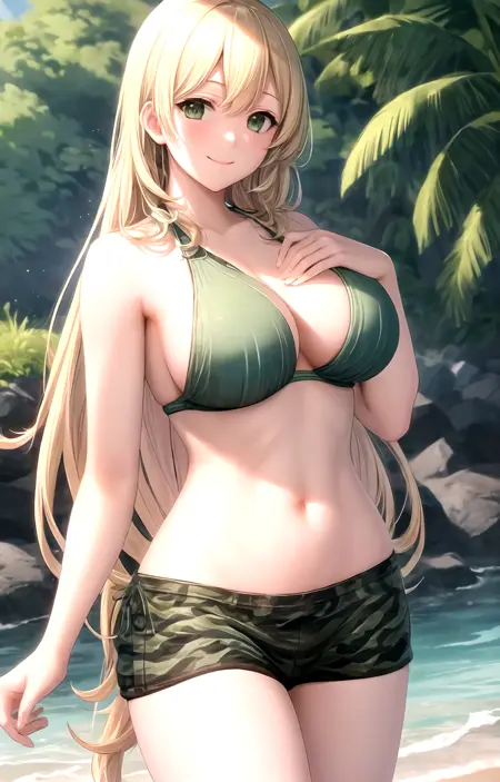 - Activation tag: ayanemellow, use with green bikini, halterneck, cleavage, green shorts, and camouflage.