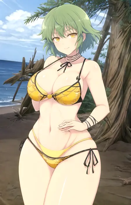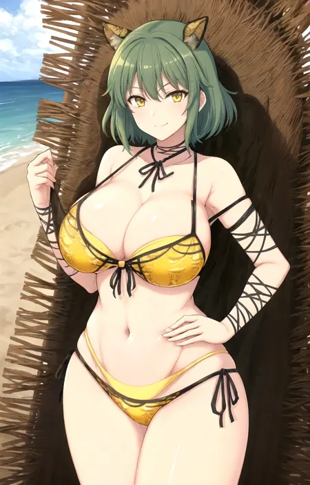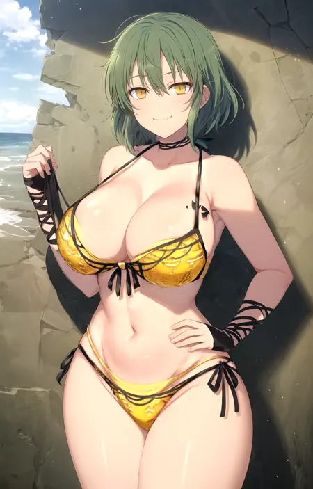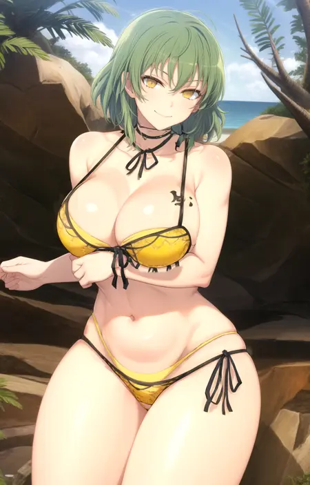 Activation tag: kirche_bikini. Use along with yellow bikini, thong, thong bikini, highleg bikini, and cleavage.