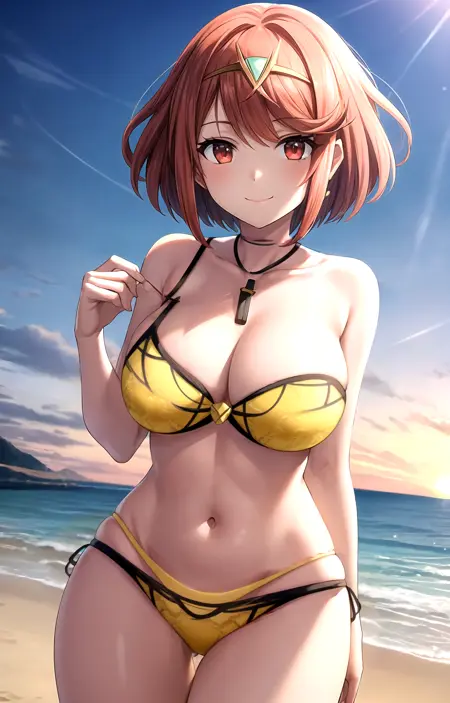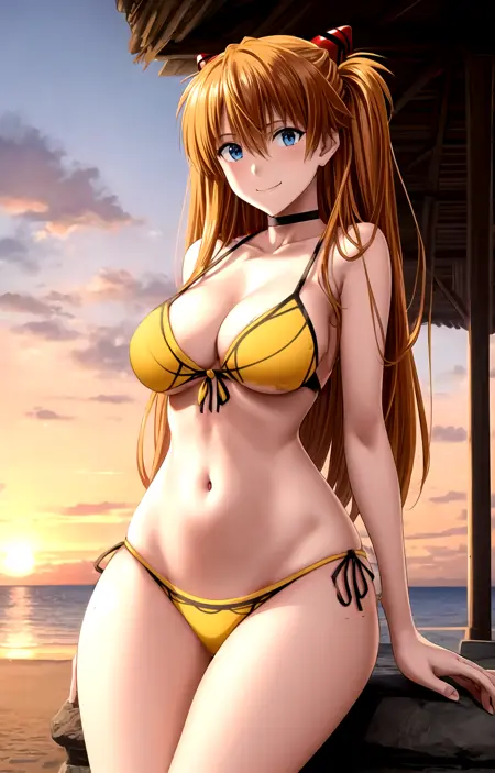- Activation tag: no10-asuna, use with (white bikini, red trimming, o-ring, highleg:1.2), cleavage, halterneck, panties under shorts, and (red,white shorts, short shorts:1.2).