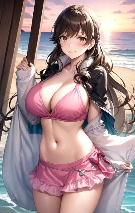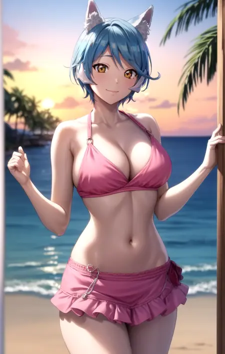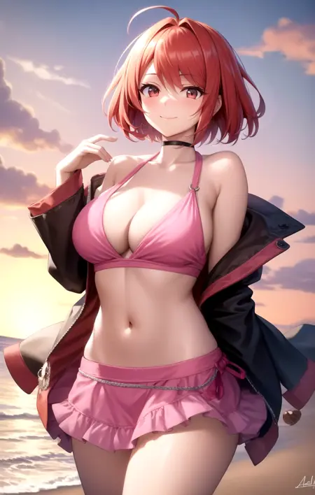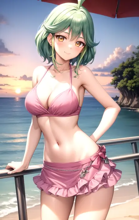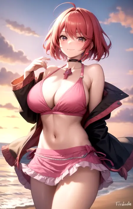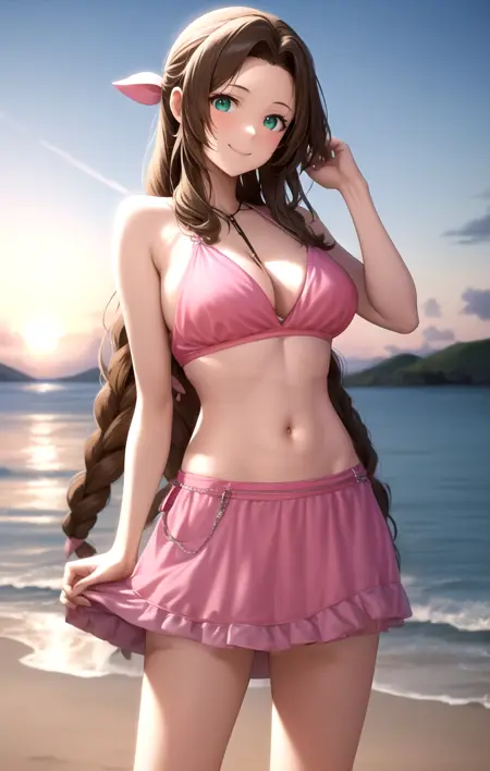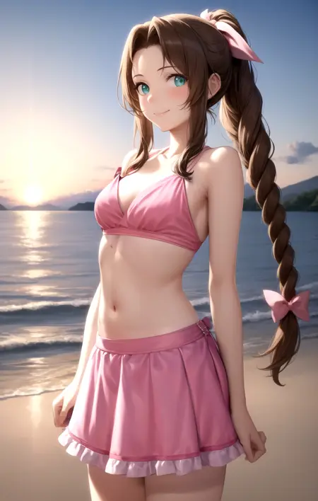- 激活标签:aerith_ff7r_bikini。与 粉色比基尼、胸脯、荷叶边、粉裙、比基尼裙、褶边裙、短裙 和 粉色蝴蝶结 一同使用。