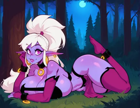 主要なトリガー語:syx 紫肌のエルフ、白髪、ポニーテール