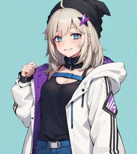 AA12Jacket,黑色背心,白色夹克,星星发饰,黑色短裤,腰带,贝雷帽
