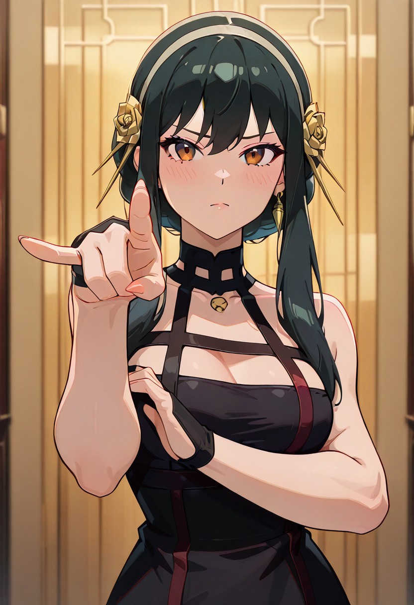 Korra-Stare-Off-Il-1.0, pointing with two fingers, pointing at viewer