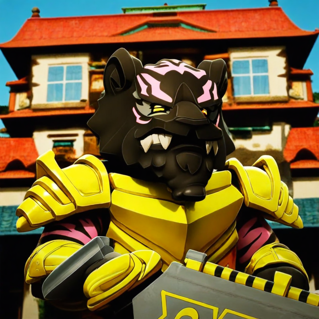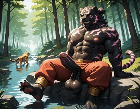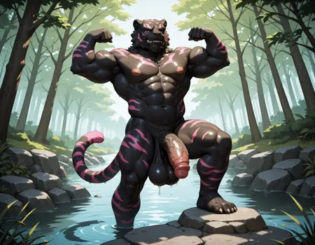 使用: 人型、黒肌、黒毛の体、Lord Ras、虎、赤い目、尾、肌にピンクの虎のしま模様、爪
