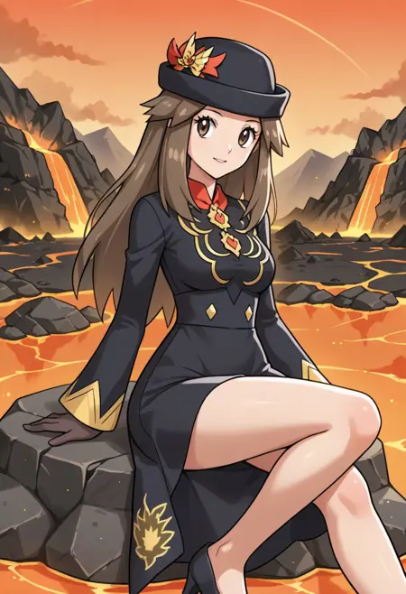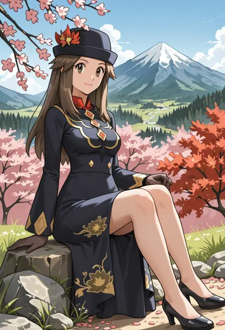 ncleaf、leaf \(pokemon\)、茶色の目、茶色の髪、長い髪、サイドロックス