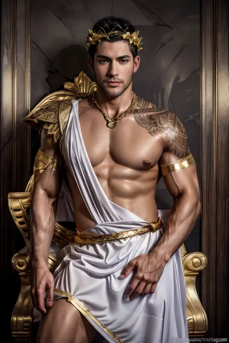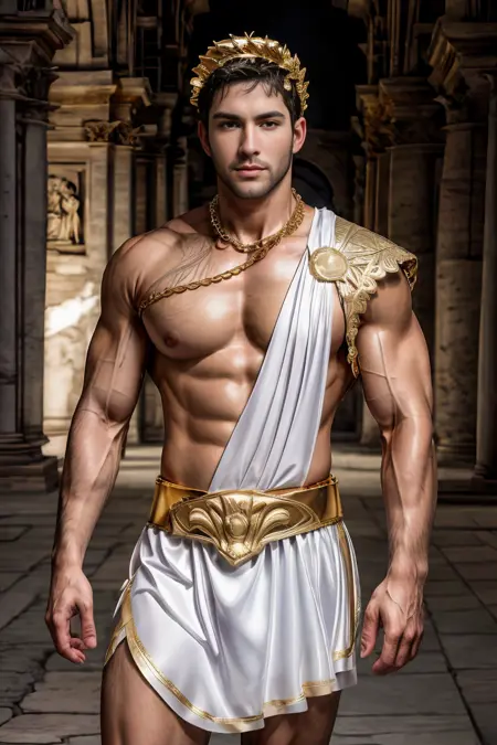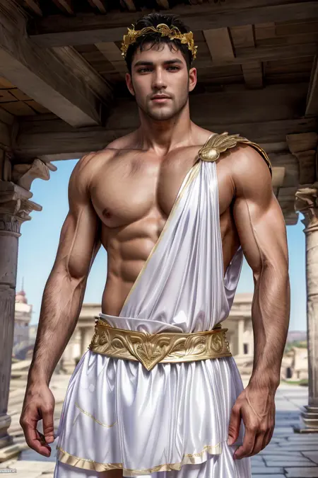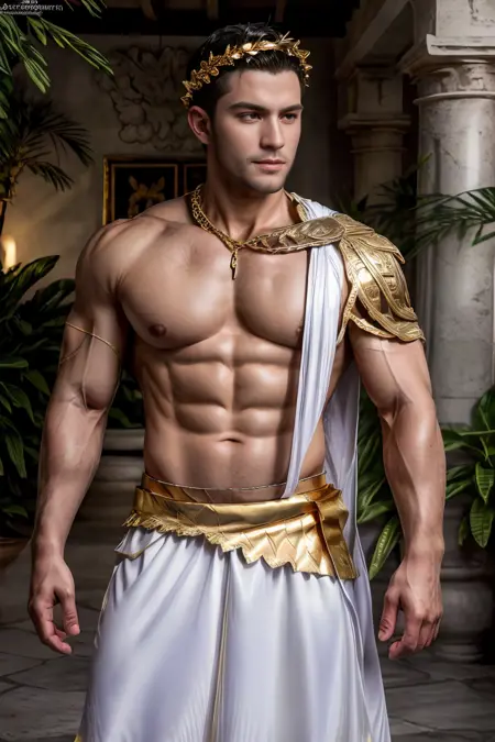 Additional tags: Greek clothes, laurel crown, gold jewelry