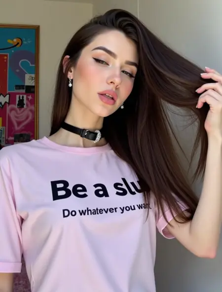 该模型生成的角色拥有真实多样的体型、富有表现力的姿态,并着重体现个性特征。你会看到多彩的发色——从柔和的马卡龙色到醒目的霓虹色,搭配翅形眼线、亮泽双唇、项圈以及层次丰富的配饰。服装风格倾向顽童与另类时尚:露脐上衣、宽松连帽衫、破洞渔网袜、乳胶材质,以及一切不刻意却充满挑逗感的单品。姿势与面部表情常带有俏皮、叛逆或顽皮的特质。