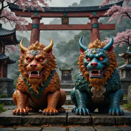 시사(Shisa)는 악령으로부터 보호하기 위해 존재합니다. 이 수호자들은 보통 출입구 양측에 쌍으로 자리잡으며, 왼쪽 시사는 좋은 영혼을 안으로 가두기 위해 입을 닫고(여성), 오른쪽 시사는 나쁜 영혼을 밖으로 막기 위해 입을 벌리고(남성) 있습니다.