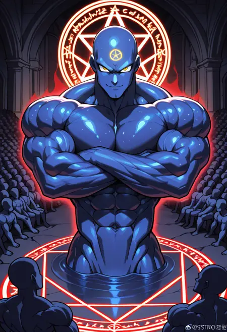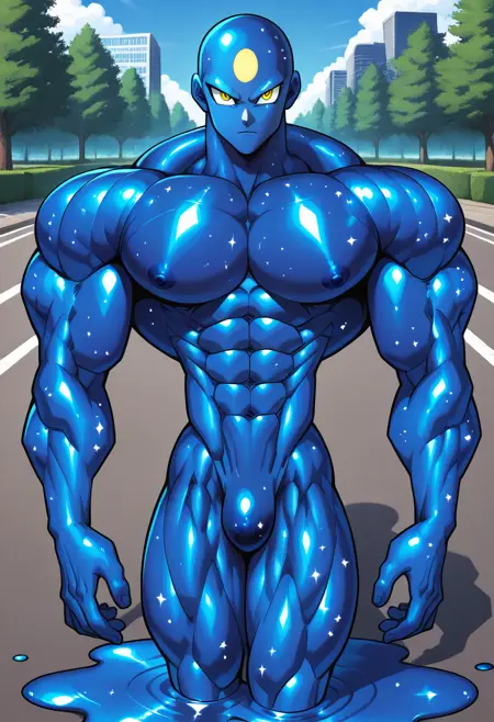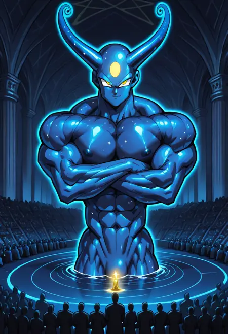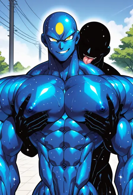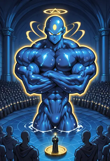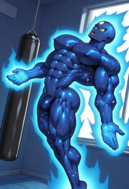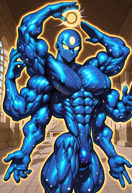 An OC of mine intented to depict a muscular cosmic blue-ish skin deity.