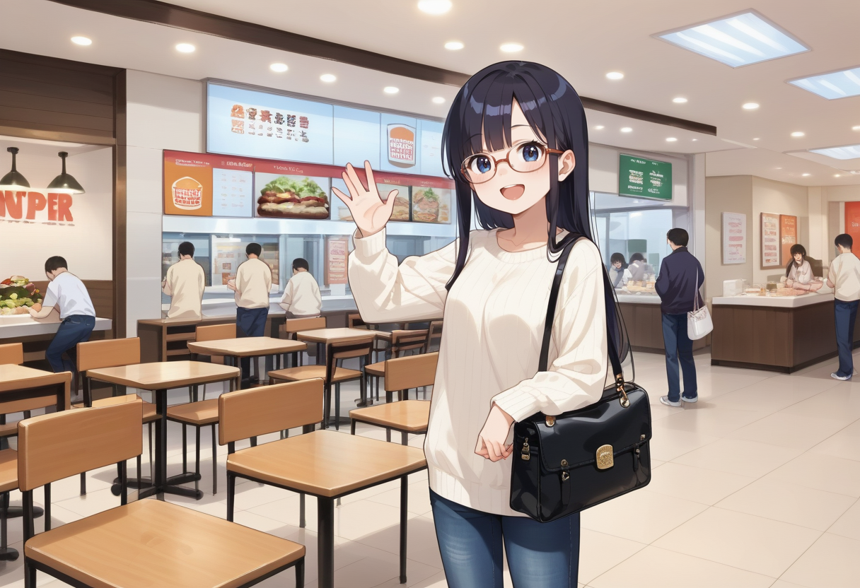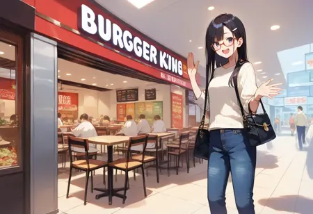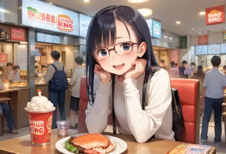 これは日本のショッピングセンター内にあるインビルスタイルのハンバーガーショップの店内っぽい雰囲気の風景をもしかしたら描けるかもしれない可能性が微妙なレベルで存在するLoRAかもしれません。This may be LoRA, where the possibility exists at a subtle level that you may possibly be able to paint a landscape with an atmosphere similar to the inside of an in-building style hamburger store in a Japanese shopping center.