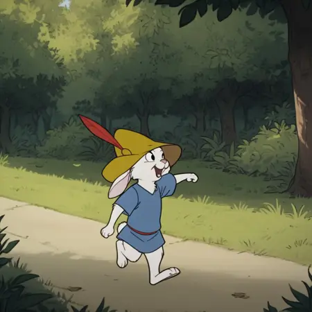 skippyRH, semi-anthro, male, rabbit, white fur, yellow hat, blue tunic