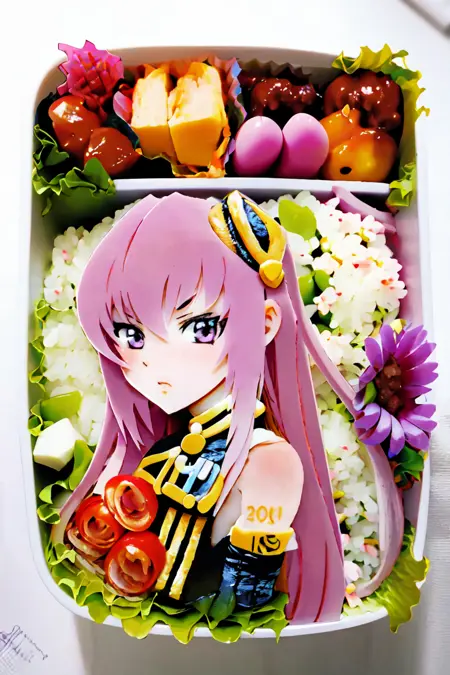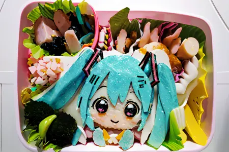 このLoRAを使えば、お気に入りのキャラクターをキャラ弁の箱にできます。