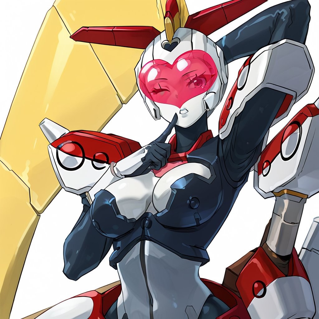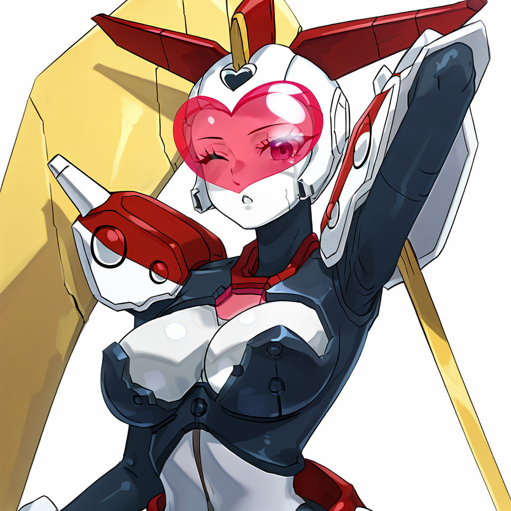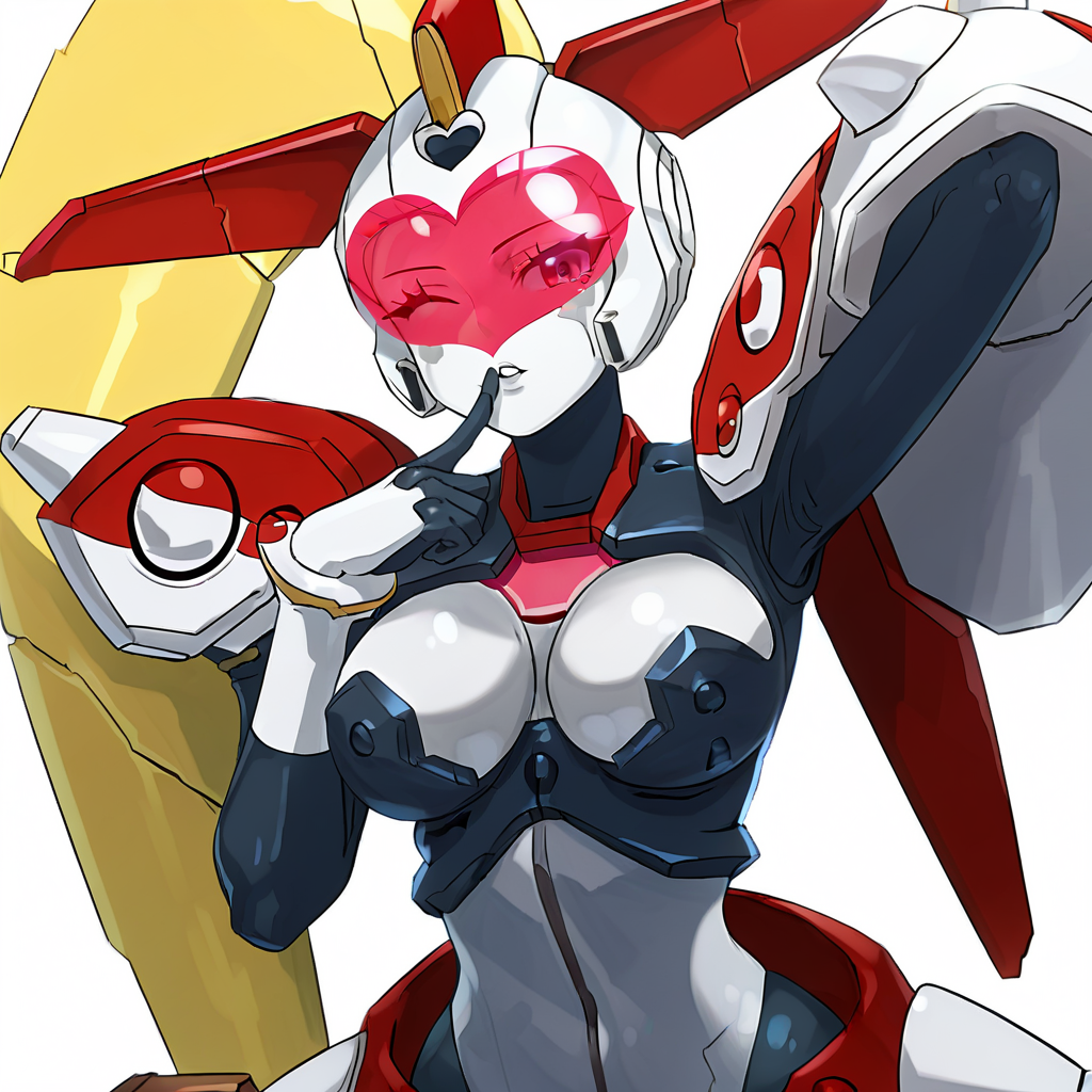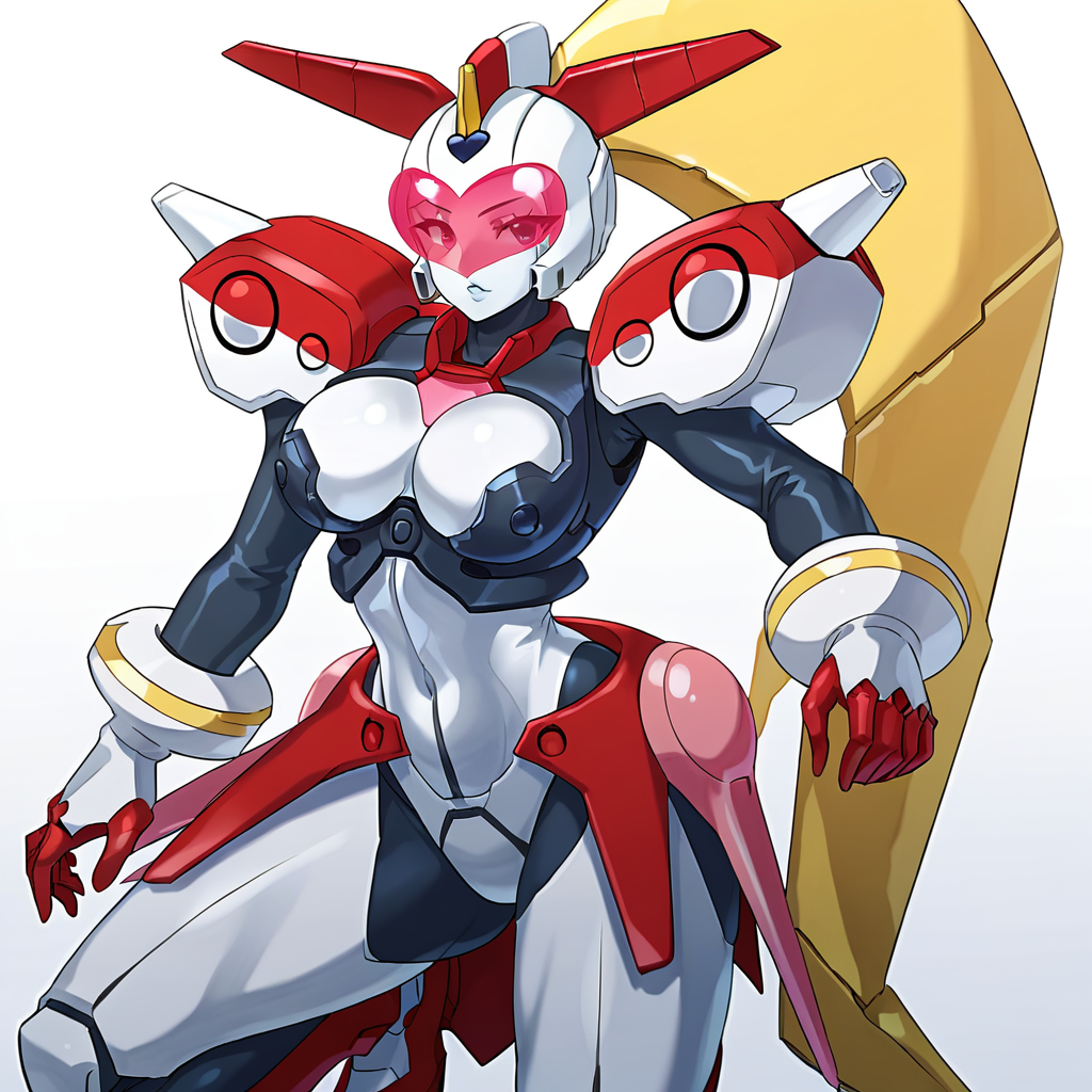 | Trained Words | Diana17, solo, 1girl, mecha breasts, armor, mecha, robot, large breasts, robot girl, no humans,white metallic face, soft pink lips, no human skin, robotic texture, semi transparent heart-shaped visor, no human skin texture, mechanical ponytail-like structure made of segmented yellow armor platesCopied! |
