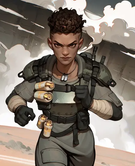 갑옷은 중세 스타일을 띨 수 있음. 더 많은 군사 장비 프롬프트가 필요할 수 있음. 예: 전술 장비 - 폭탄이나 캐리어 같은 장비 프롬프트를 추가할 수 있음