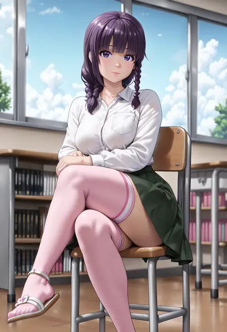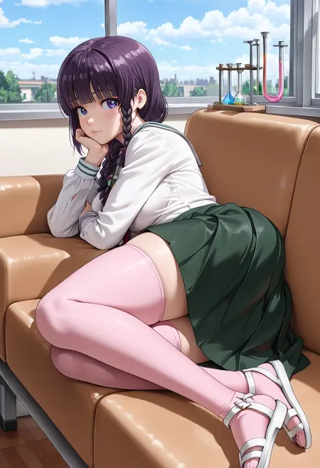 (long_hair,black_hair,purple_hair,purple_eyes,braid,sidelocks,blunt_bangs,single_braid,hair_over_shoulder),