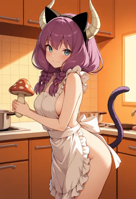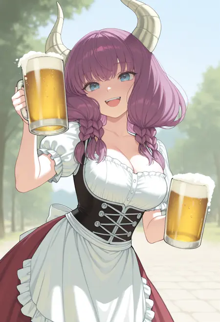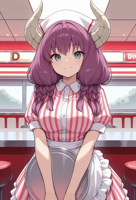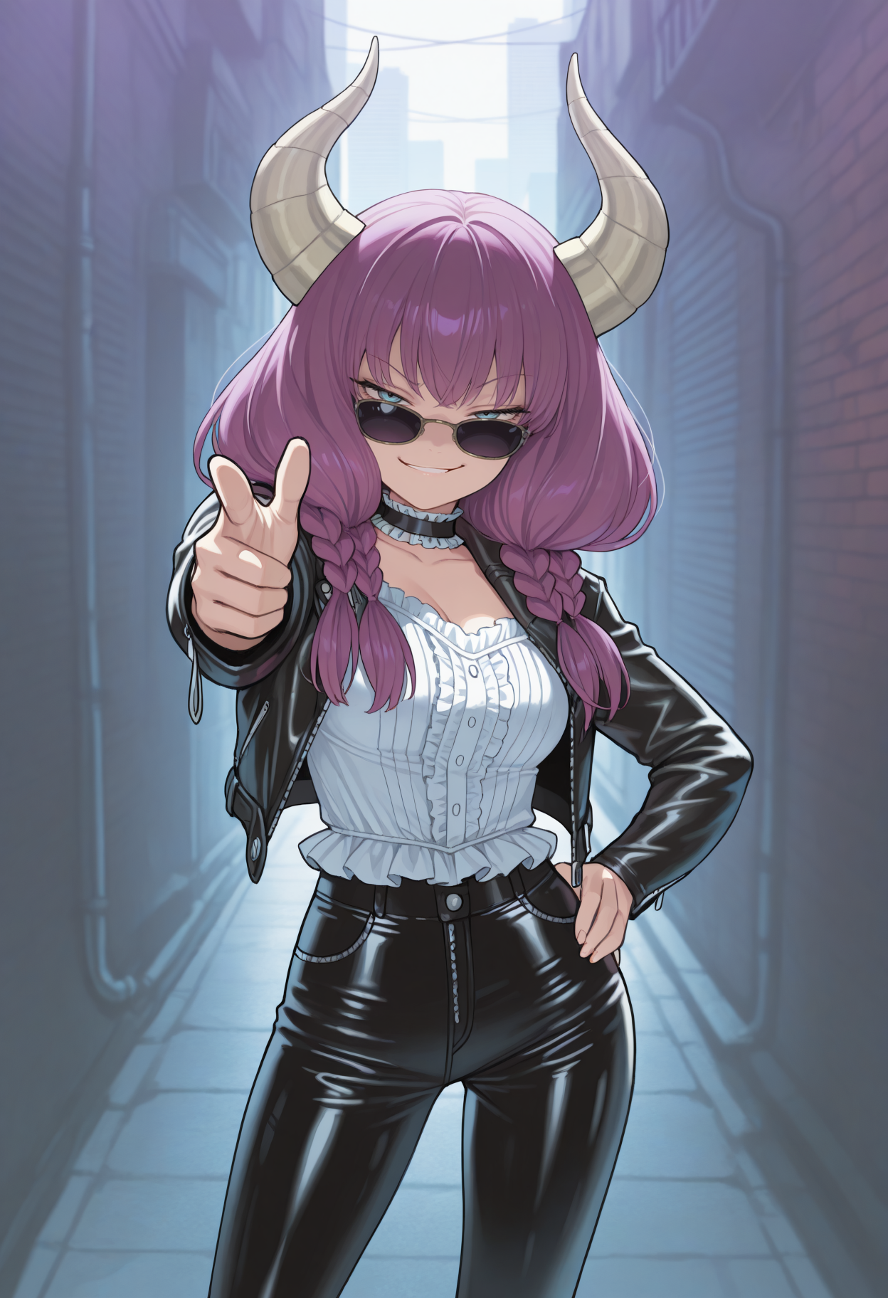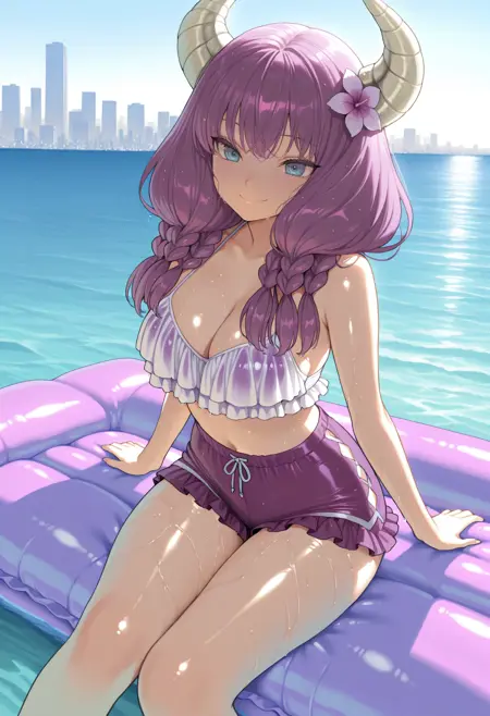 4ura, 紫色头发, 蓝色眼睛, 角, 长发, 双马尾