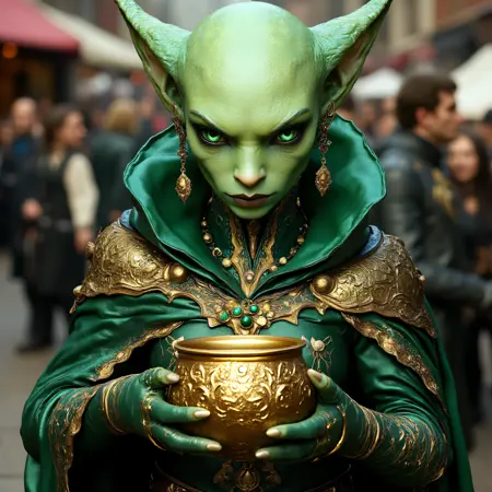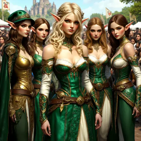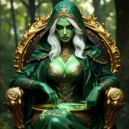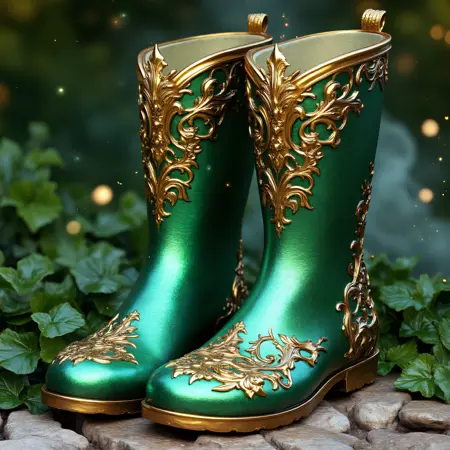 A vibrant style that combines lush emerald tones with golden accents to create enchanting fantasy scenes.