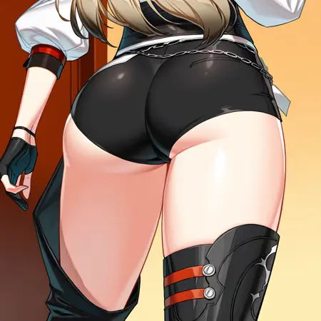 | Trained Words | Closers_Hp, 1girl, solo, long hair, blonde hair, multicolored hair, blue eyes, mole under eye, black gloves, fingerless gloves, shorts, short shorts, asymmetrical clothes, thighhighs, single pantsleg, thigh boots, boots, high heelsCopied! |