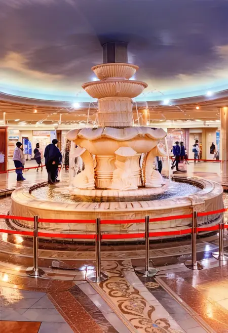 izuminohiroba, scenery, water, sky, fountain, real world location, ceiling, tile floor