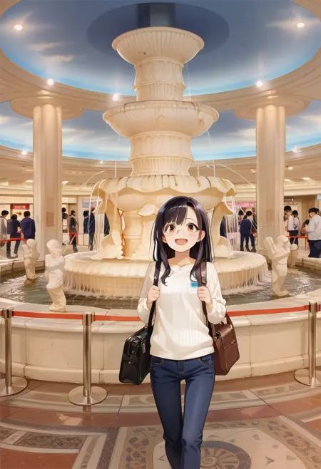 これは、大阪にかつて存在した待ち合わせ名所、泉の広場っぽい風景イラストがもしかすると描けるかもしれないLoRAです。