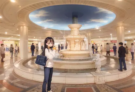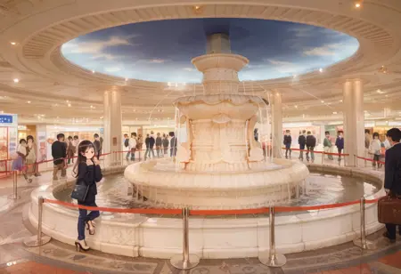 This is LoRA, which may be able to draw an illustration of a landscape similar to Izumi no Hiroba, a meeting place that once existed in Osaka. これは大阪にかつて存在した待ち合わせ名所、泉の広場っぽい風景イラストがもしかすると描けるかもしれないLoRAです。